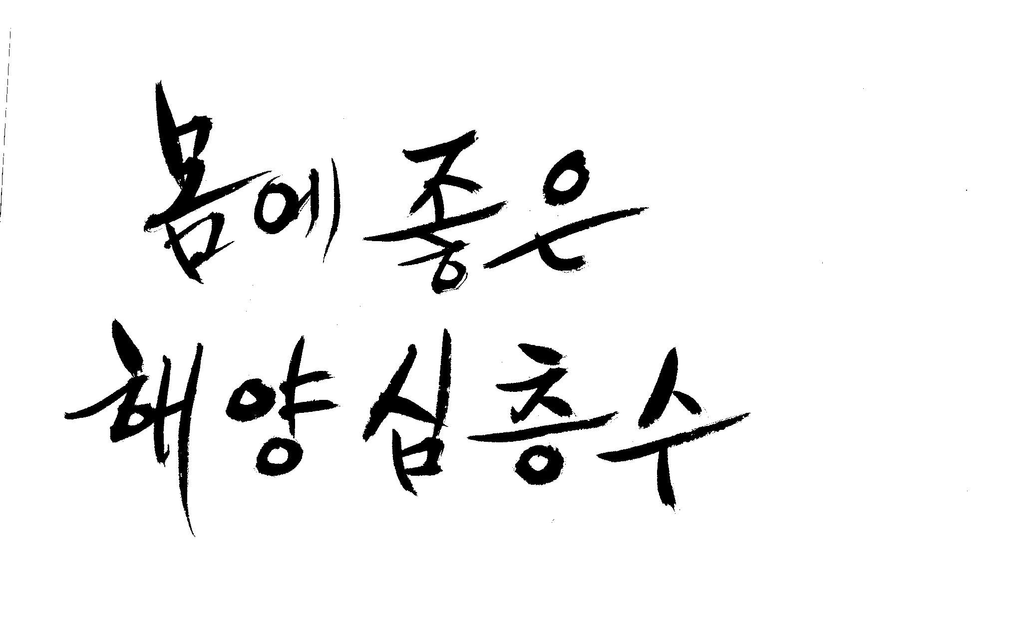 캘리 부탁드려도 될지~ 김철호 일반 1 8047 2009.01.20 00:54 > > > > > > > > > > > > > > 안녕하세요~ > > > > 항상 좋은 정보 많이 보고 가고 있습니다. > > > > 감사합니다~ > > > > 캘리 좀 부탁드려도 될지 모르겠어요. > > > > ' 몸에좋은(愛), 해양심층수' > > > > 바쁘신데 부탁드려요~ > > > > 눈길에 안전운전하시구요~ ^^ > > > > > > > > > >